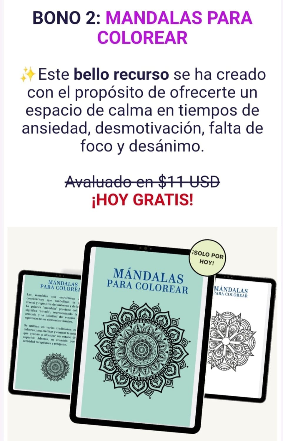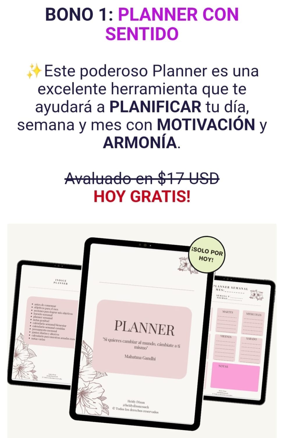 ¡Sí!, Además del eBook, tendrás acceso a material exclusivo adicional como “Planner con Sentido”, “Mandalas para Colorear” y “Checklists” que te ayudarán y serán un apoyo más para tu TRANSFORMACIÓN. Todo se envía en formato PDF y lo puedes ver desde cualquier dispositivo y/o imprimir. El valor de estos 3 fabulosos BONUS es mayor a 17 USD y HOY los obtienes de REGALO.